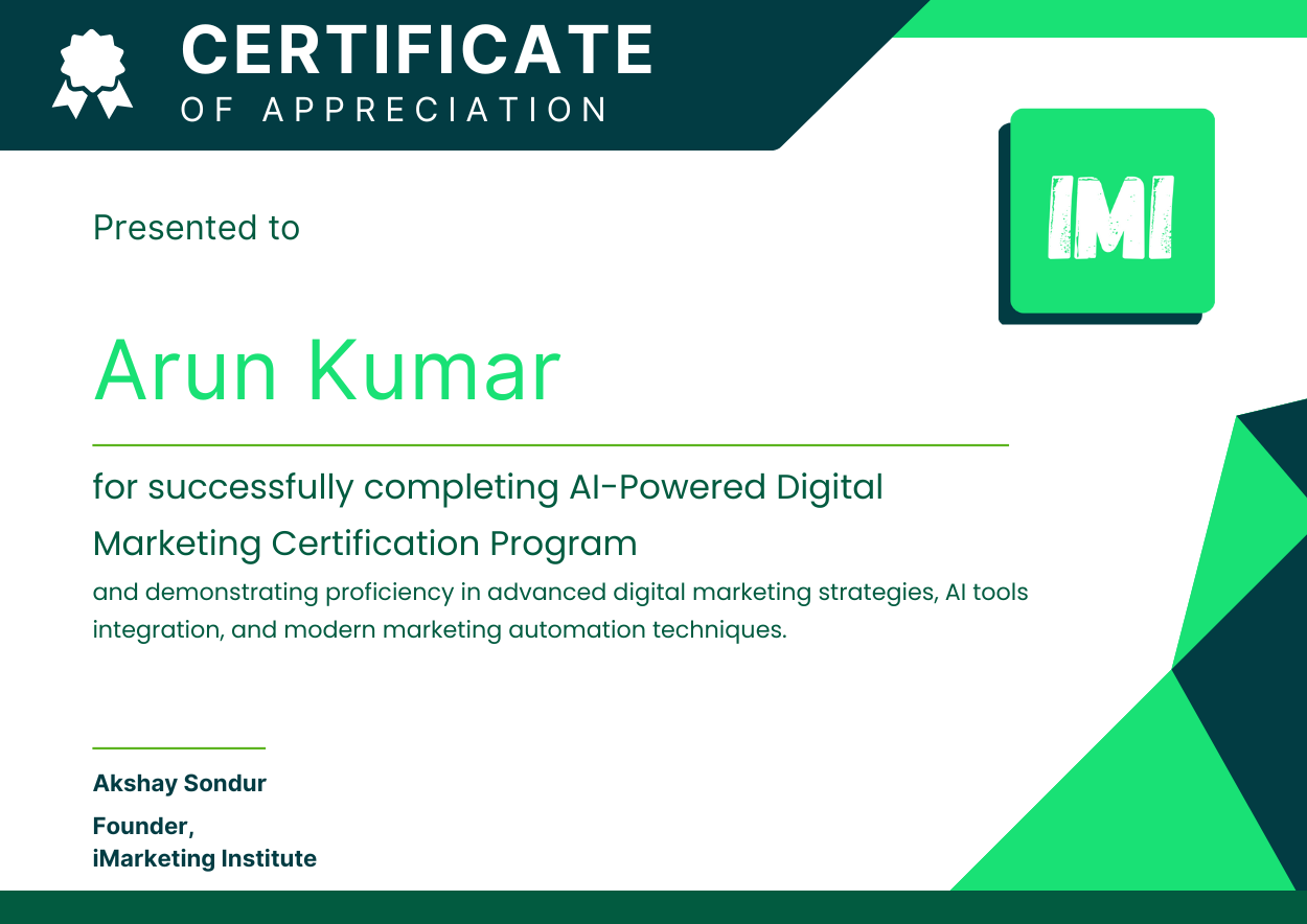 Upon successful completion, receive an industry-recognized certificate that validates your expertise in AI-powered digital marketing.